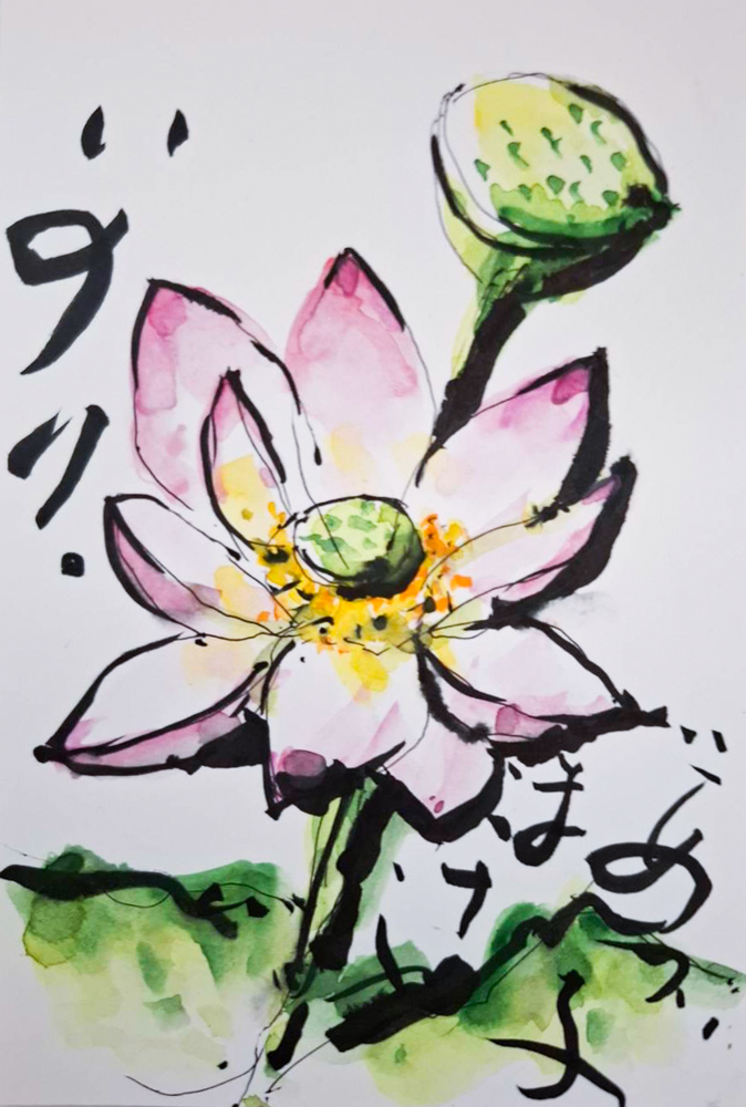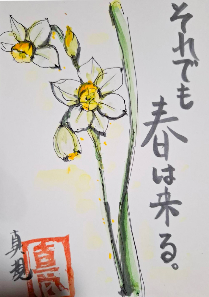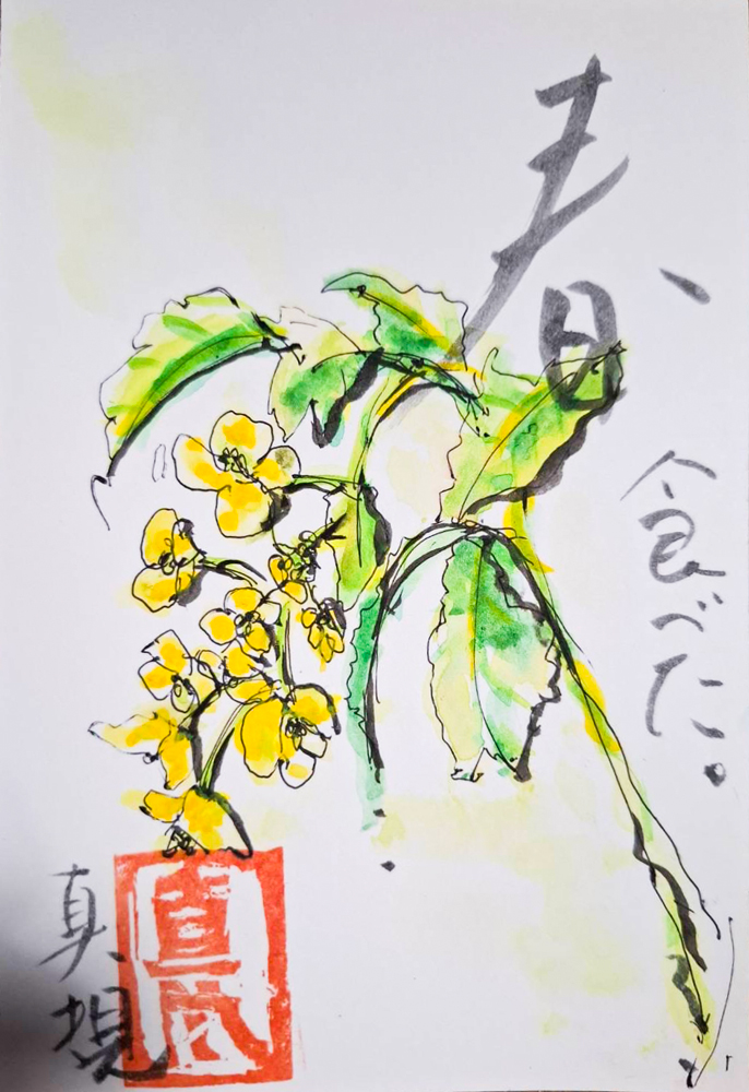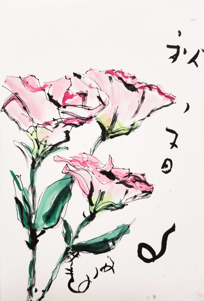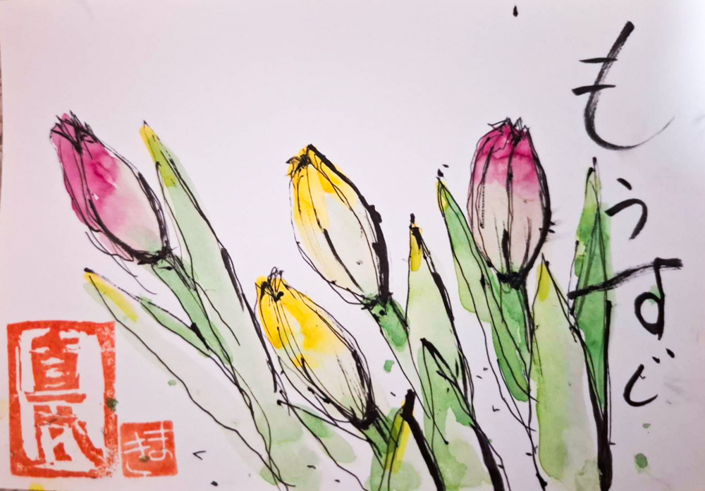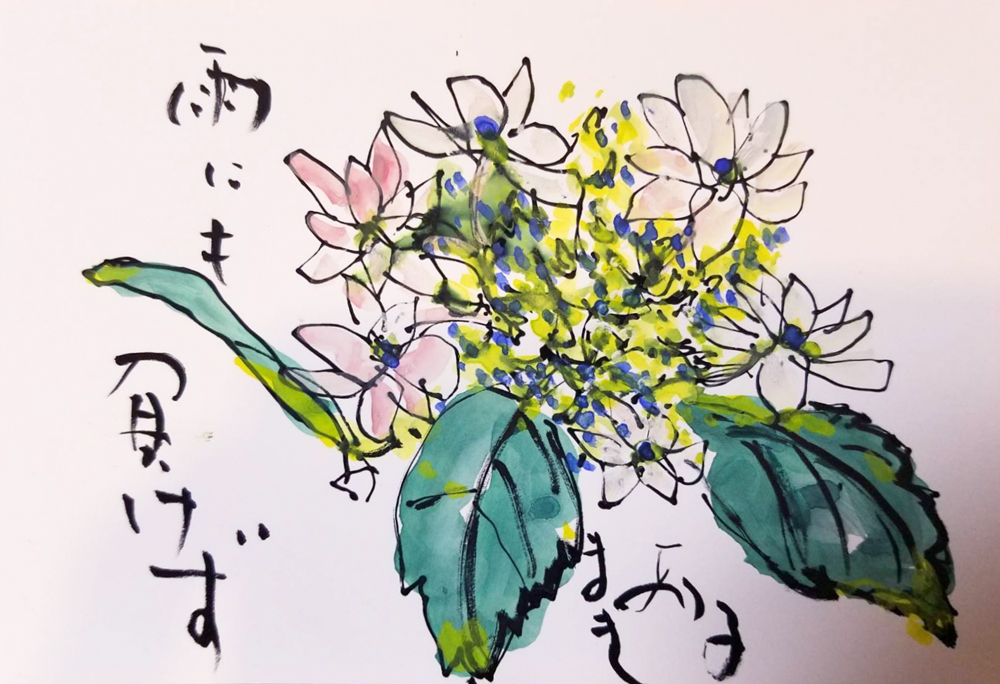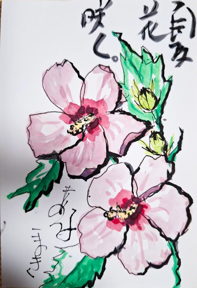 母の入院中に、母との合作で季節の花や食べ物を題材に絵手紙を描くようになりました。四季折々の草花や果物が持つ生命力を感じながら、二人で筆を走らせ色をつけて一言添えるだけですが、時間を忘れて創作に没頭するだけで、リフレッシュできる時間になります。