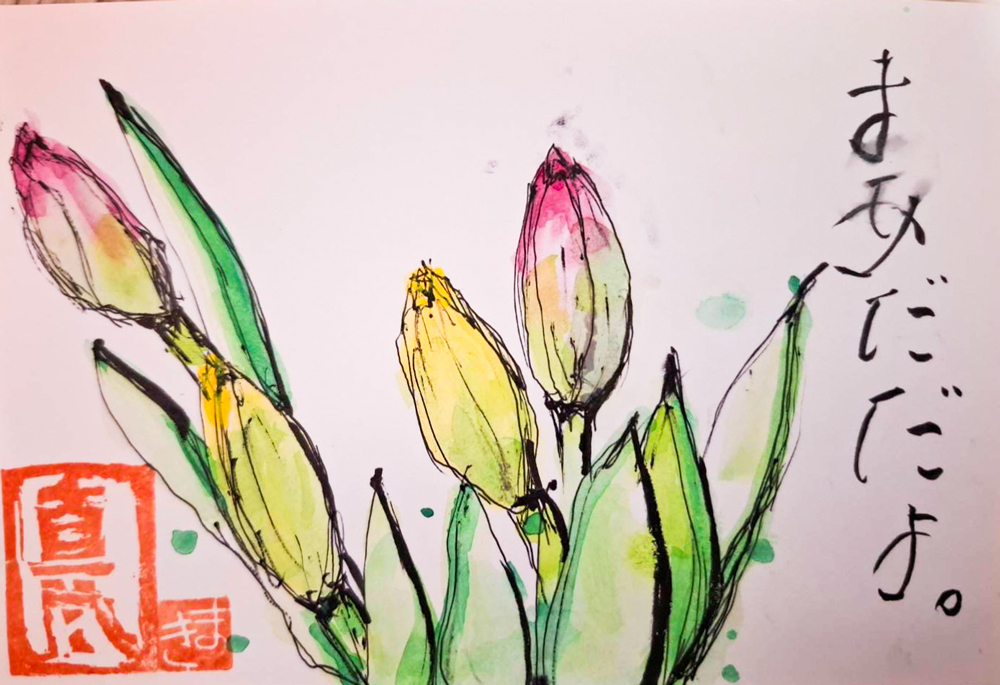 母のリハビリのために二人ではじめた絵手紙ですが、母が他界したあとも、時間があれば母との時間を思い出しながら、コツコツと絵を描き続けています。